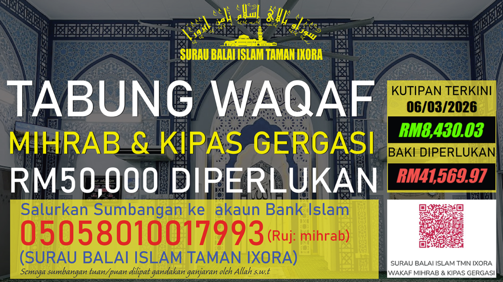 Atau melalui akaun Bank Islam 05058010017993 (Surau Balai Islam Taman Ixora)